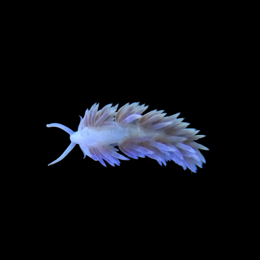 The Invertebrate Berghia Nudi (Berghia sp.) is a peaceful species that is reef-safe, admired for its delicate size, soft-bodied form, and unique role as a natural predator of nuisance Aiptasia anemones.