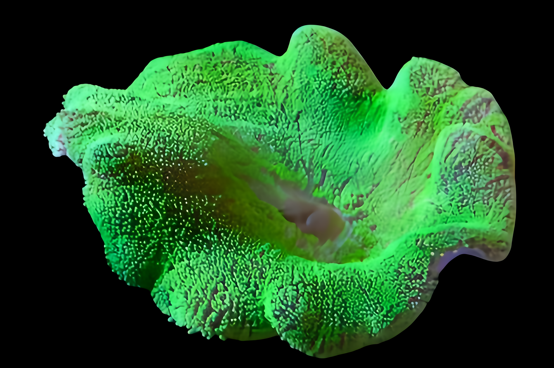 Carpet, Giant ([Stichodactyla gigantea]) is a semi-aggressive species that is reef-safe with caution, admired for its vibrant coloration, intricate carpet-like patterns, large size, and long flowing tentacles. Males typically are larger, with brighter colors and more robust tentacle development, while females/juveniles have softer coloration and smaller overall size. They reach about 12–20 inches and should be housed in aquariums of at least 50 gallons.